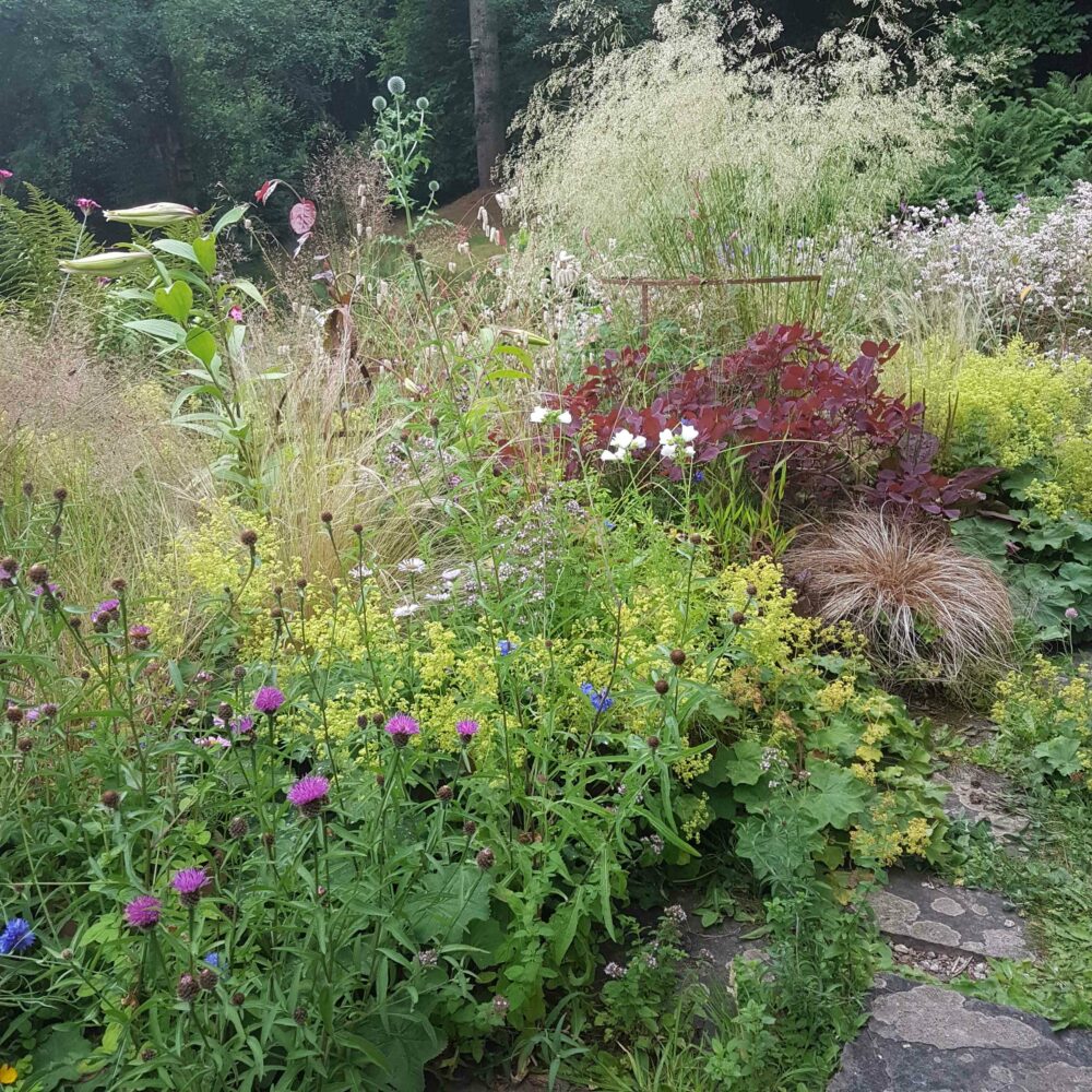 Native plants are also prominent at Nant-y-bedd in the Black Mountains of Wales, which won RHS Partner Garden of the Year 2022 – and most of them occur in the surrounding landscape. The result is a pleasingly unruly 10 acres where waves of flowering plants, interspersed with vegetables and fruit, brim with bees, butterflies and moths. “Our gardens can provide refuges for many species,” says Nant-y-bedd’s Sue Mabberley, “while being beautiful and productive.”