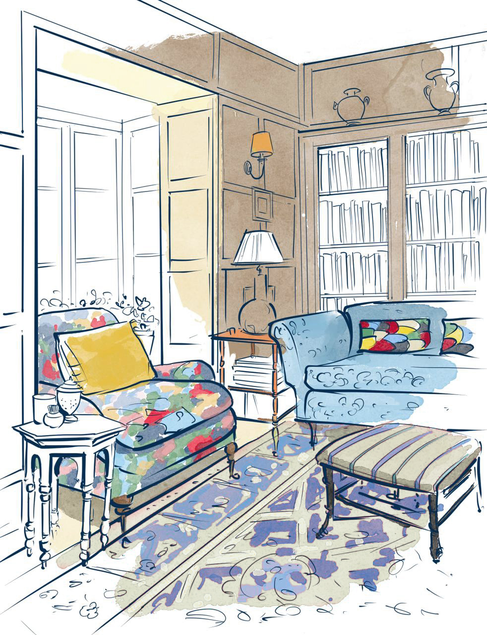 We brought our three children up there, and my interior-design business was started at the kitchen table. About 10 years ago we began looking for a larger space for my business. People come to us for inspiration, so we wanted a studio that felt like a home. We found another Grade II-listed, 17th-century derelict building, which was built as a farm then used as a coaching inn. It was in disrepair, but we could see the potential. We’re so privileged to work on these historic houses and beautiful listed buildings, which are the mainstay of our work.