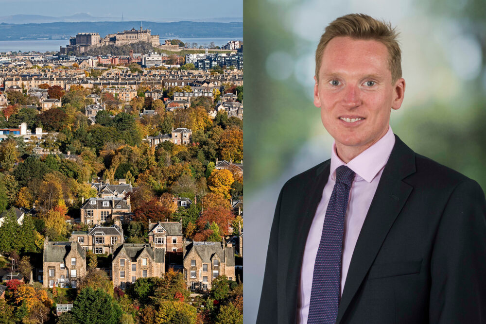Pictures from top: view of Edinburgh from Calton Hill (Alamy); Savills specialist Ben Fox; Circus Lane, Stockbridge (Getty); cheesemonger IJ Mellis (Alamy); view from Blackford Hill across the city (Alamy); Tyninghame beach, East Lothian (Alamy)