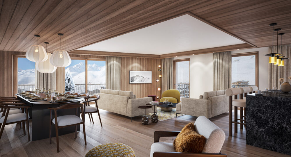 A stone’s throw from the slopes of the Tignes – Val d’Isère ski area (300 km of skiing), this residence embodies a new vision of luxury in the mountains: authentic, sustainable and friendly.
