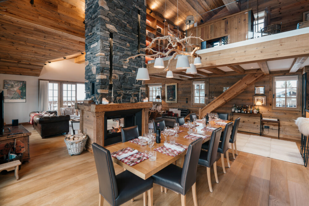 Designed to showcase its dominant position on the edge of the piste, the chalet benefits from panoramic views while maintaining complete privacy and the warm atmosphere of a family home. Spanning over 350 sq m across four levels, it offers generous spaces thoughtfully arranged to provide the perfect balance between conviviality and relaxation.