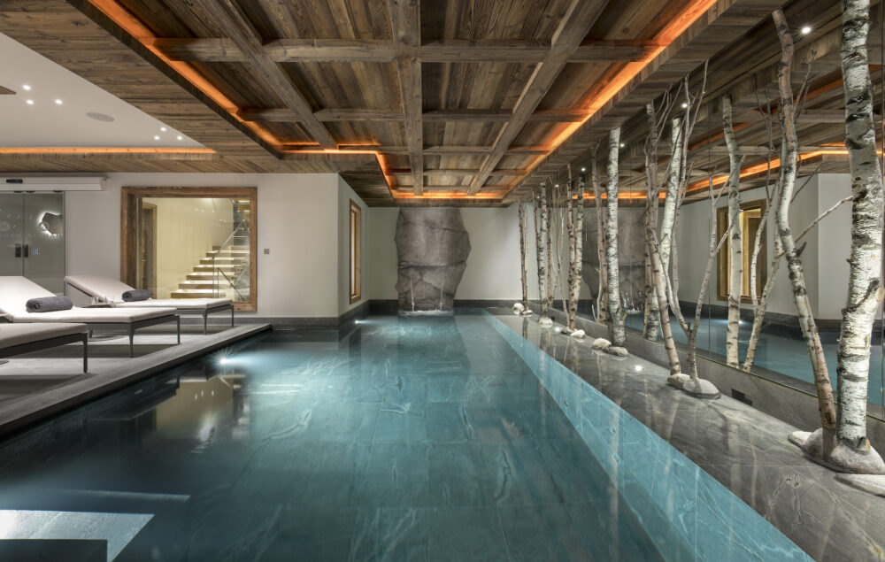 New 6 bedroom chalet in the Chenus area of Courchevel 1850. Exceptional ski in - ski out accommodation of 800 sq m with spa and fitness facilities. For rent by Savills Courchevel.
