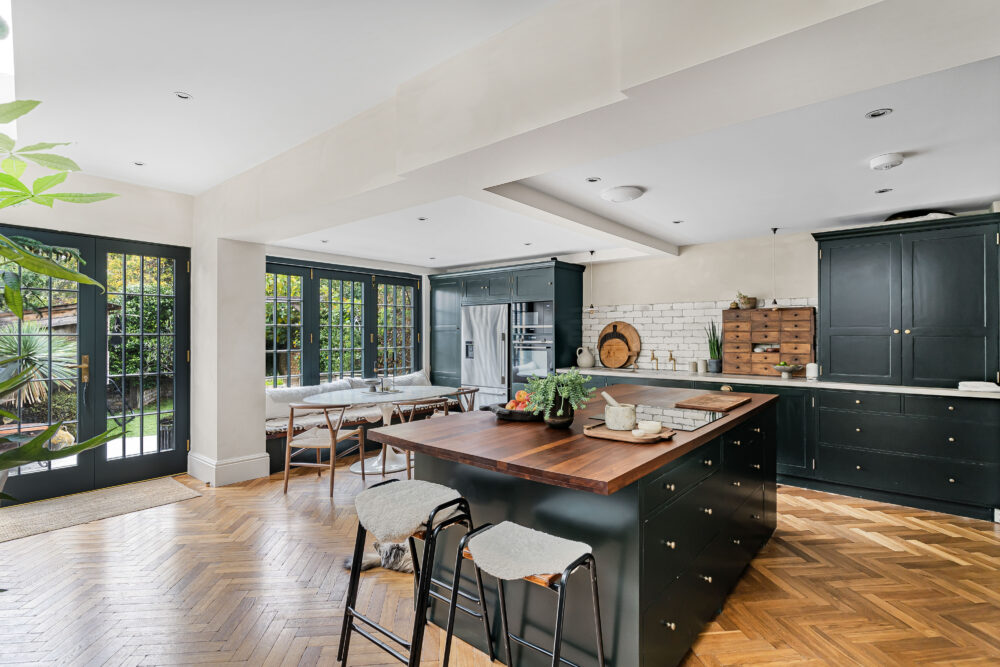 Every room has its own vibe, with bold colours, clever design touches, and a layout that flows effortlessly across three spacious floors. The ground floor is all about entertaining and everyday living, with two generous reception rooms and a standout kitchen that opens onto a private garden. It’s the kind of space that invites long dinners, lazy Sundays, and spontaneous get-togethers.