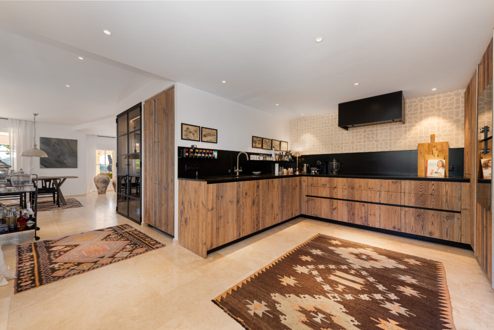 This exceptional family home is situated in a privileged location on a flat plot, offering magnificent views of the harbour and the sea. High-quality stone walls and façades lend the property an elegant Mediterranean charm.