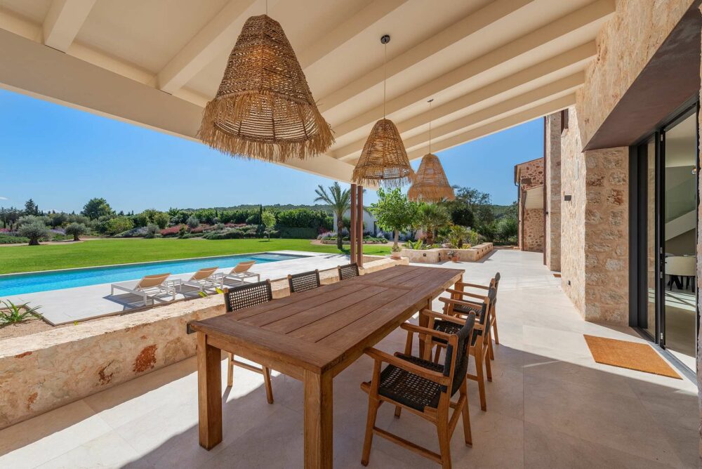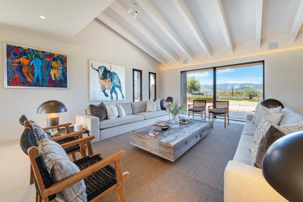 Tastefully designed new finca situated in a peaceful countryside, including a vineyard, a guest house and views of the Tramuntana Mountains.